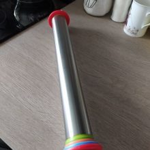 I ordered this for my granddaughter to use when rolling out sugar cookies. It was very easy for her to use and all the cookies came out the same thickness. One minor thing she did not like; the flour did not stick to the stainless steel, as easily as the wooded one she is used to using, so sometimes the dough would stick to the pin. We loved the mat that came with it. It completely stuck to the table, which made it easy for her to roll out the dough.