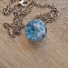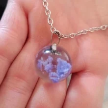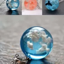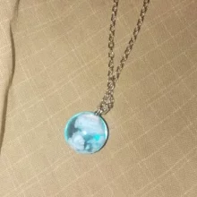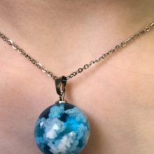 My daughter loves this necklace! I told her the description says that it’s to carry the blue sky with you and she really loves that. It’s a fun sentiment as we move into the colder and darker months. She’s pretending that it really does have a piece of the clouds inside which makes it a fun gift for a younger child like mine who is 7. The ball is a pretty blue color and the clouds look different from each angle which is fun. I do think it looks better from a distance as it gives you the fun puffy cloud look. If you look really closely it’s more like rock crystals. I love that the back of the necklace has lots of options so you can adjust where the necklace falls which is a must in her case as we needed the smallest close. It’s great that it can grow with her. I think it’s a great necklace for the price and the fun description would make it a great gift to tell the recipient in person or in a card.