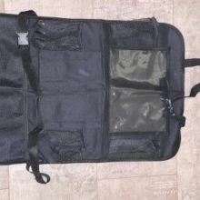 Excellent utility and design. Functional in back and on front of seat for family and work purposes. Two adjustable straps are very helpful. I am concerned that the lower strap clip may poke into my back; it may be a better idea to put the clip immediately next to the organizer instead. Very happy with my purchase!