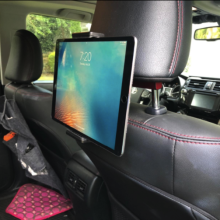 This is really easy to install, and works well with smaller headrests. It is a little hard to pull the arms apart with one hand while you hold the tablet if you need to fully extend the arms.