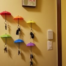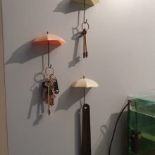 These little umbrellas are so cute. I put them in a corner of our room. I've got rings, necklaces, bracelets and small charms on them. They have a very adhesive back and a good hold. They're very bright colored and I'd reccomend to others. Would be great in a child's room.