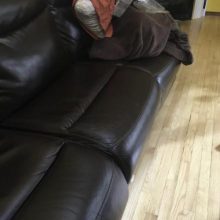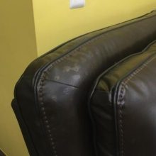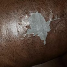 I should have taken a before photo so I could show the difference but I didn’t. We had one big tear in our “pleather” sofa as well as many scratches and small holes. Most were made by our cat walking on the couch and her nails just made little pin holes. The tear was about the size of a quarter and was caused by a bug spray coming in contact with the couch and delaminating it. I have to say, this product does a better job fixing large holes/tears than small. Our couch is chocolate so I used the black. I also did’t need the patch material. Applied one coat, gave about an hour to dry then reapplied. You can’t see the big hole unless you look for it. so much better than before.