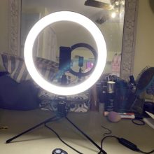 This is a nice little ring light for doing makeup or recording videos sitting down or at a table top! Also travel friendly. It’s a great size. Highly recommended!