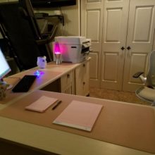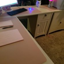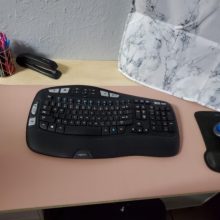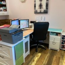 Since quarantine knocked me back to working at home (attorney), and we have a built in desk in the kitchen (we have A home office/music room but it’s not super conducive to my working since my husband also works at home), I use my laptop at home but I like to have the separate mouse and didn’t have a mouse pad.