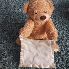 This is such an adorable bear. The peek a boo movement with the blanket is super cute. I wish this had a video to show how the bear plays peek a boo. Had I seen the video, I definitely would've ordered two or three all at once.