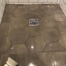 You guys…. My floor is a different color than I thought it was when I bought the place. I used an oxyclean/water mixture and let it sit for ~5 minutes, then went to town with the small drill brush. I thought it would brighten the brown grout a bit. I did not expect my grout to actually be beige under all that crud.
