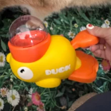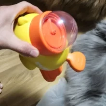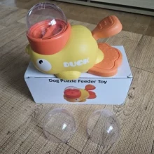 The yellow duck-shaped treat dispenser encourages interactive play, enhancing your dog's mental stimulation.